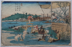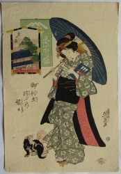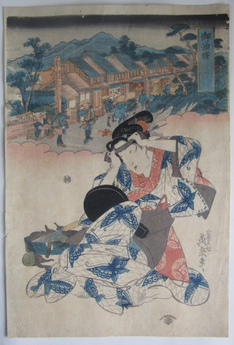| 渓斎英泉(1791~1848)江戸出身。武家の出。北斎に私淑し、菊川英山の門に入り、浮世絵師となる。英泉は師の英山とは異なった妖艶の美人を描き人気を博す。風景画で英泉は広重との合作『木曾街道六十九次』を制作。 |