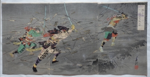 | 尾形月耕(1859〜1920)江戸出身。菊池容斎に私淑。琳派の系統尾形光哉の家姓を襲名して尾形を名乗る。同年ころより尾形月耕名で挿絵をはじめ、文芸雑誌の口絵を描いて一躍人気画家の仲間入りを果たした。明治20年代には水野年方とともに新聞挿絵の双璧として絶大な人気を得る。錦絵シリーズでも「月耕随筆」などを出版、日清戦争の錦絵も描いた。弟子に山村耕花がいる。 |