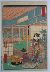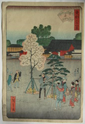 | 歌川二代広重1826〜1869、初めは重宣を名乗る。初代広重(安藤広重)と同じく定火消同心の子。初代広重没後、広重の長女お辰の婿となり二代目を襲名。慶応元年、離別後立祥と称する。広重晩年傑作の「名所江戸百景」に携わるなど優れた絵師の一人であるが早世する。 |