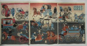 | 歌川三代広重(1842〜1894)江戸出身。二代広重没後、三代目広重を名乗る、初代広重、二代広重、とは異なる時代(明治時代)に活躍したため、西洋風俗を描いたいわゆる開化絵や横浜絵を得意とした。広重の画号に恥じぬ明治期の風景画の一躍を担った。 |