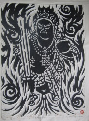 、棟方志功に師事。日本版画協会退会後、日本板画院創立に参加するが後、退会。国画会会員。作品に凹凸(おうとつ)がある独特の拓刷り技法を創始する。