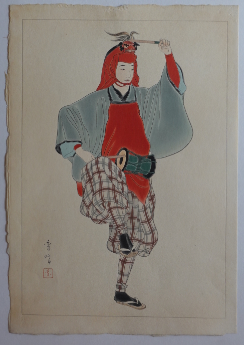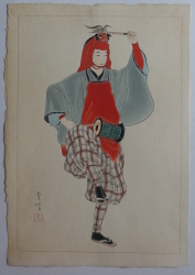 | 山川秀峰(1898〜1944)京都生。池上秀畝に花鳥画を学んだのち、鏑木清方に師事して美人画を修めた。清方門下の伊東深水、寺島紫明と並び「清方門下三羽烏」と称された。 1928年の第9回帝展で《安倍野》が特選、1930年の第11回帝展でも《大谷武子姫》で再び特選となり、帝展無鑑査となる。新版画では渡辺版画店などからモダンな美人画を発表し、《さらし女》《素踊》《序の舞》など、気品と清澄な筆致による代表作を残した。1939年には伊東深水らと青衿会を設立し、美人画の近代的展開に寄与。昭和19年、疎開先の神奈川県二宮町で没した。門下には志村立美らがいる。 |