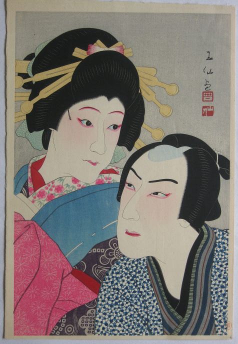 1886〜1960、東京生まれ、米遷、白穂に師事。漱石、藤村らの挿絵担当。大正5年より版元の渡邉から木版画を製作。新版画の分野で役者絵では質量とも卓越した絵師。晩年は不遇のうちに自殺。