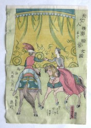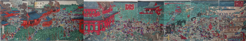 | 歌川芳虎 生没年不詳、歌川国芳の門人。国芳の得意であった武者絵や、美人画、風景画、横浜絵など多くのジャンルをこなした。明治元年の錦絵師番付では2位。明治21年頃没。 |